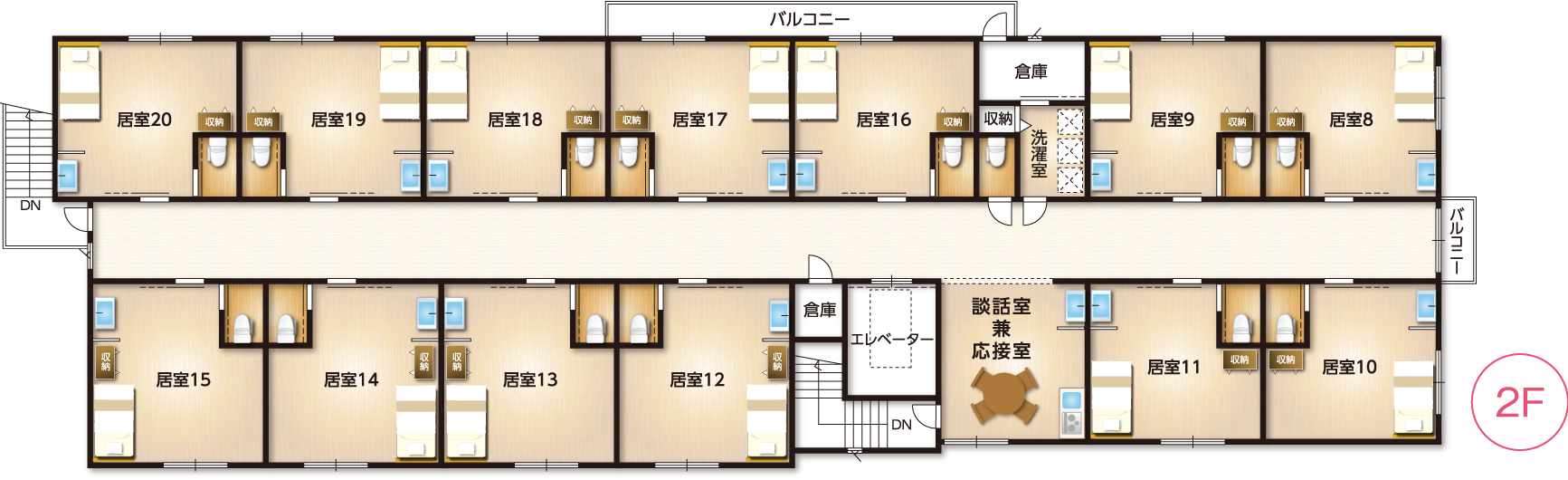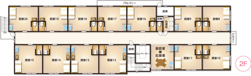 「はなの家」では経験のあるスタッフが24時間常駐しており、入居者様が安心して生活できるよう心がけたサービスを提供いたします。